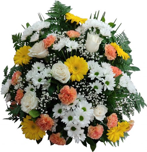 Un Centro de flores naturales y duraderas para dar un bonito último adiós a tu familiar o amigo. En definitiva, un precioso y tradicional detalle floral para mandar al funeral, velatorio, entierro, sepelio o tanatorio y acompañar a tu ser querido.»