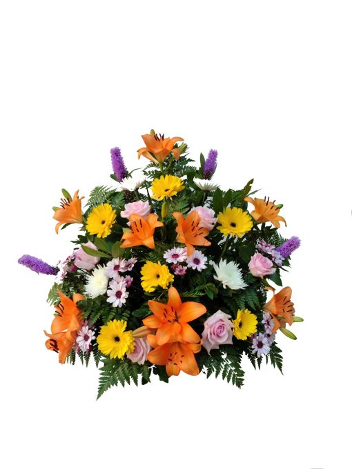Un Centro de flores naturales para difunto para dar un bonito último adiós a tu familiar o amigo. En definitiva, un precioso y tradicional centro floral para mandar al funeral, tanatorio, cementerio, velatorio o entierro y acompañar a tu ser querido.