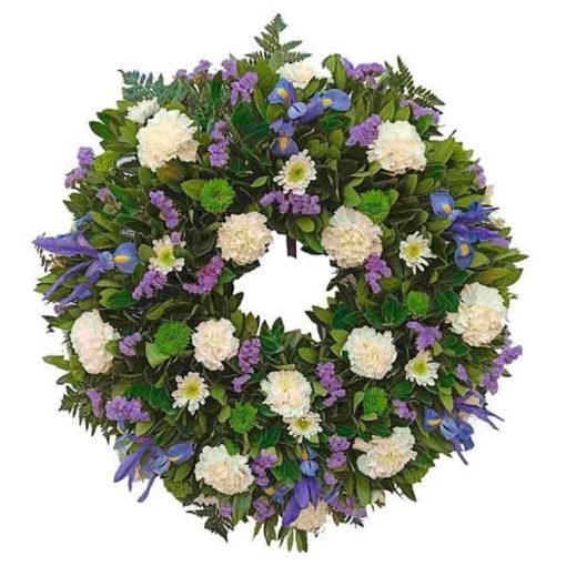 La exclusiva corona funeraria Floral es perfecta para enviar rápido al tanatorio, cementerio o entierro hoy mismo en Madrid.